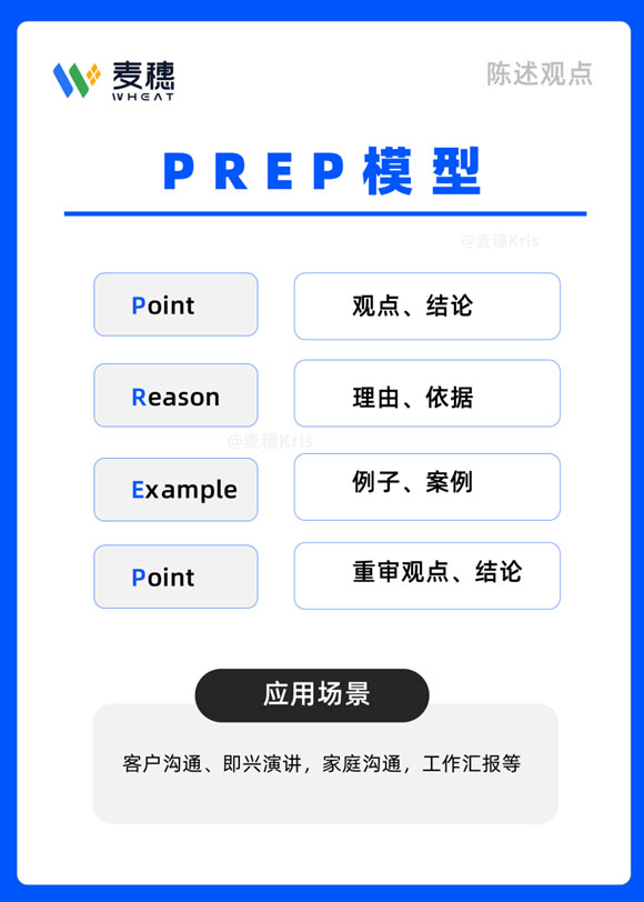 大家好,今天给大家分享PREP模型,它可应用于与客户沟通不同观点、即兴演讲、家庭沟通、工作汇报等场景。