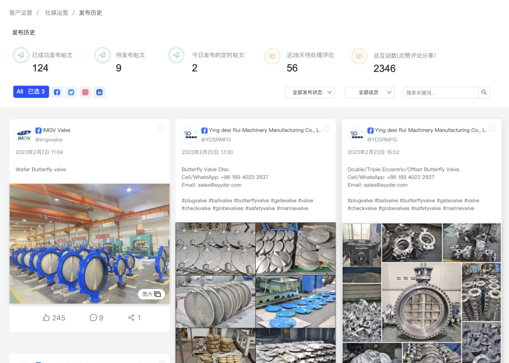 覆盖邮件、社媒发布、IM即时通信工具三个主要触达通道,多纬度、全方位对目标采购商进行触达,随时随地出现在采购商的视野中,增进采购商对我们的了解,并提升获得咨询的机会。